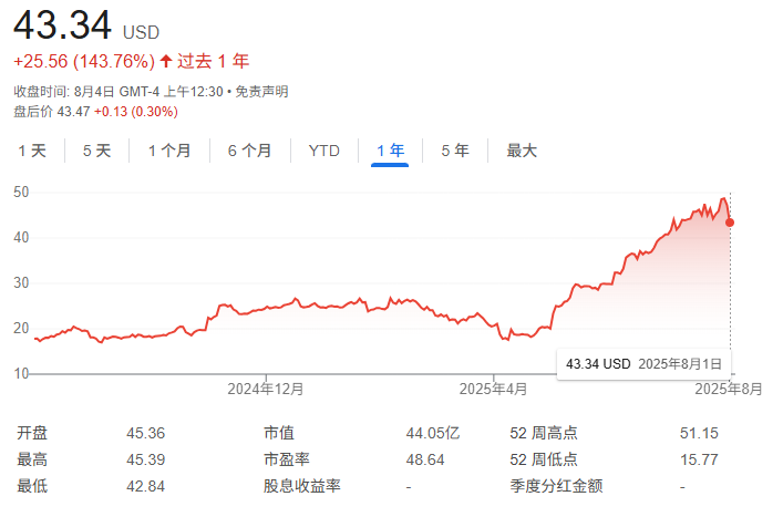 2025年7月30日,美股上市公司TTM Technologies(TTMI)公布了截至6月30日的2025财年第二季度财报。消息公布后,迅达股价在正常交易时段上涨0.43%,并在盘后交易中再上涨1.75%。该股近期表现突出,目前股价已逼近52周高点50.43美元,过去一年累计回报率高达135%,值得投资者密切关注。
