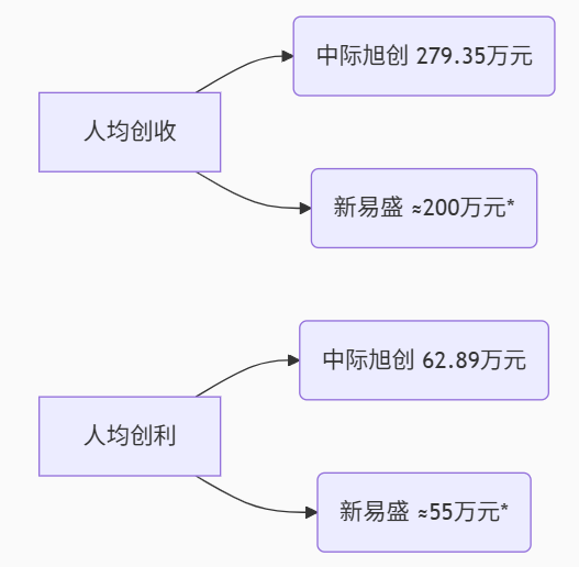 注:新易盛数据根据2024年净利率38.8%及员工规模估算;中际数据来自2024年报