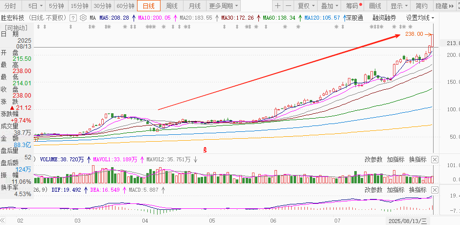 今年以来,AI主线狂奔,龙头轮番刷新纪录。8月13日,AI硬件再爆,胜宏科技站上C位——自2019年低点起,股价已涨超20倍。
