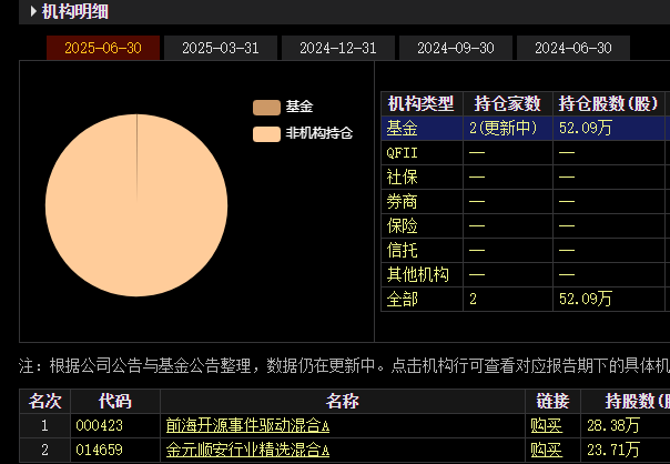 既然是资金,咱们就得看看出手的都是谁?龙虎榜数据显示,8 月 19 日机构专用席位以 3.44 亿元位居买方首位,瑞银证券、“炒股养家” 等知名席位同步进场。这些资金的背后性质不得而知,因为短线客最不好拿捏的,就是情绪。其他维度,让我们更有兴趣继续跟踪一下这家公司的意义在于,机构投资者开始对这家公司加大跟踪力度了。