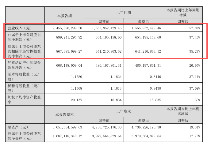 归母净利润 :8.99 亿元,同比增长 37.46%