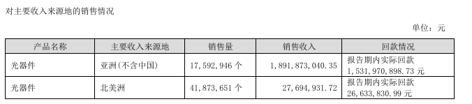 北美 :销量 4187 万个,销售额 27.69 亿元,回款 26.63 亿元