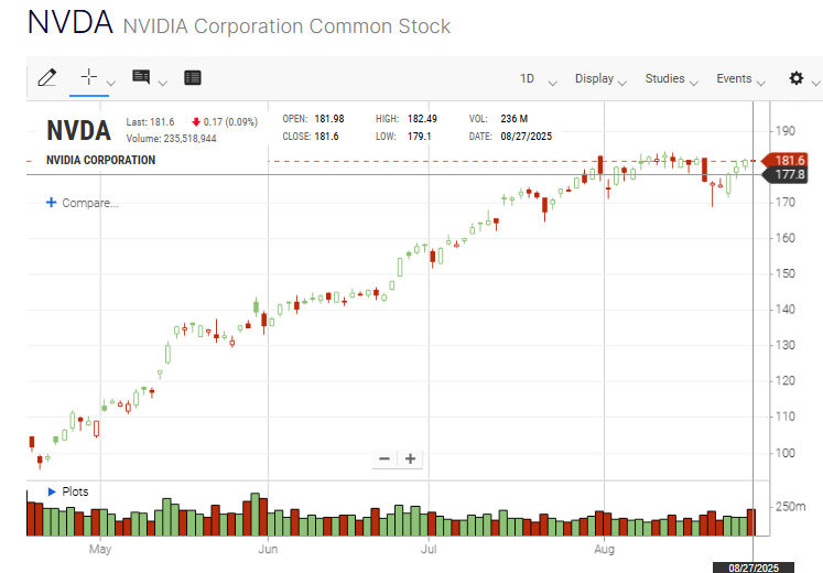 体量越大,增速越难维持。Q2营收同比增速有所下降,更要命的是,下游的云厂商和大模型公司本身盈利不足,AI应用的商业化落地又没能同步。如果支出节奏被迫收紧,英伟达的收入就可能踩下急刹车。与此同时,市值超4万亿美元的英伟达,本身就背负着“不容失手”的预期。只要某一季度数字“不够炸裂”,估值和情绪都会先行反噬。
