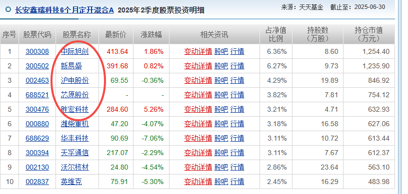 而同样的统计周期里,国产算力龙头寒武纪背后站着超1300只基金,表面看上去,持有该股的基金数量,没有茅台多。换句话说,粉丝优势也不是那么明显啊。但需要注意的是,在这1300只基金里,其中有接近一千家基金,是在今年二季度入场的。同时公司业绩基本面正处于突飞猛进的起始阶段,2025年H1营收同比增幅达43倍,尤其是Q2净利率环比快速提升后,已经坐实了国产算力芯片中军的地位。加之整体机构进入8月以来,对AI主题,都已经形成趋之若鹜之势头。像今年8月业绩最好的基金,就是典型代表。这只由王浩聿管理的长安鑫瑞科技先锋6个月定开A,单月涨幅接近50%,取得如此佳绩的原因,就在于这只基金持仓在今年二季度“大换血”。前五大重仓股全部为新进的人工智能主题,如中际旭创、新易盛、沪电股份、芯原股份、胜宏科技等,ALL IN AI的策略让其受益匪浅。形成示范效应之后,就会让一些原本风格偏向保守或重仓其他赛道,但又希望快速赶上排名,期待业绩不要掉队的基金经理们,在二、三季度了加快调仓换股的频率。于是,增仓和开仓算力板块,已经成为了必选项。