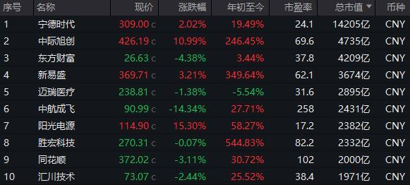 另一方面,AI主题在市场的话语权,也不断提升,会加剧机构投资者的调仓动力。像中际旭创总市值今日就超越东方财富,跃居创业板总市值第二位。从年内行情上看,中际旭创今年总市值一路飙升,年内累计增长3350.72亿元,增长规模在整个创业板中位居第一。除中际旭创外,新易盛、宁德时代、中航成飞、胜宏科技、天孚通信等公司年内总市值增长规模也均超1000亿元。市值攀升的造富神话,让板块不断获得机构投资者的瞩目。