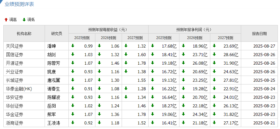 从券商预测来看,市场整体对它的未来保持乐观。2025年净利润普遍预计在16亿到20亿 之间,到2027年可能增长到30亿左右 。对应每股收益从1元出头 逐步提升到1.6–1.7元 。共识很明确:收入和结构会继续往上走,但利润兑现的节奏存在分歧,有的机构更谨慎,有的则更积极。