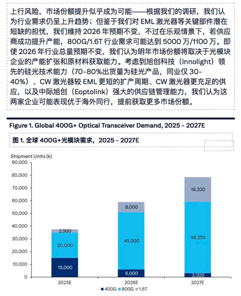 研报指出,未来在1.6T时代,中国企业有望进一步扩大份额,并在全球市场占据更核心的地位。