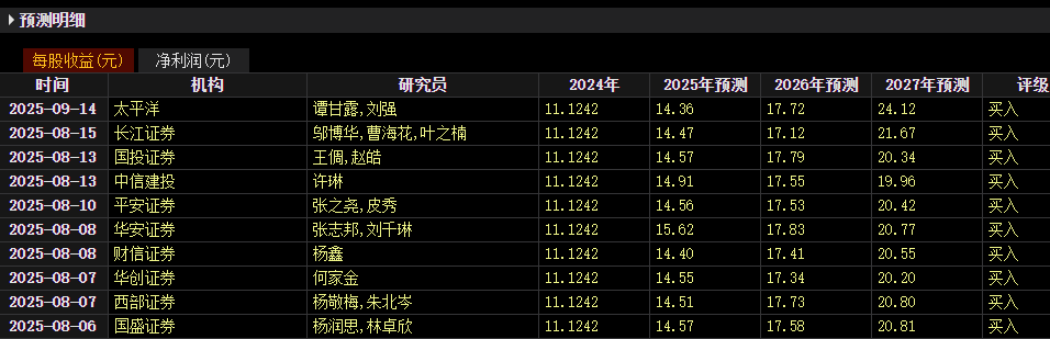 基于公司在动储业务的龙头地位、技术创新能力与全球化布局,结合行业发展趋势,业内普遍预测公司2025-2027年营业收入分别为4405亿元、5080亿元、5868亿元,同比增长21.67%、15.33%、15.50%;归母净利润分别为657亿元、772亿元、890亿元,同比增长29.49%、17.49%、15.34%;对应EPS分别为14.41元、16.93元、19.53元。