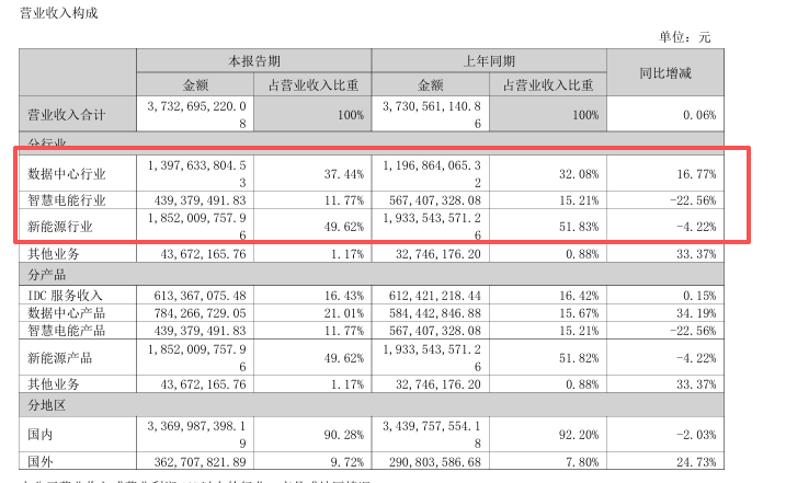 新能源是盘子最大,数据中心是增速最快,智慧电能在拖后腿 。