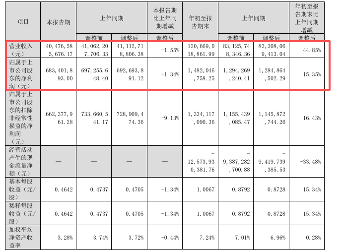 · 净利润 :6.83亿元,同比下降1.34%,环比增长103.40%。